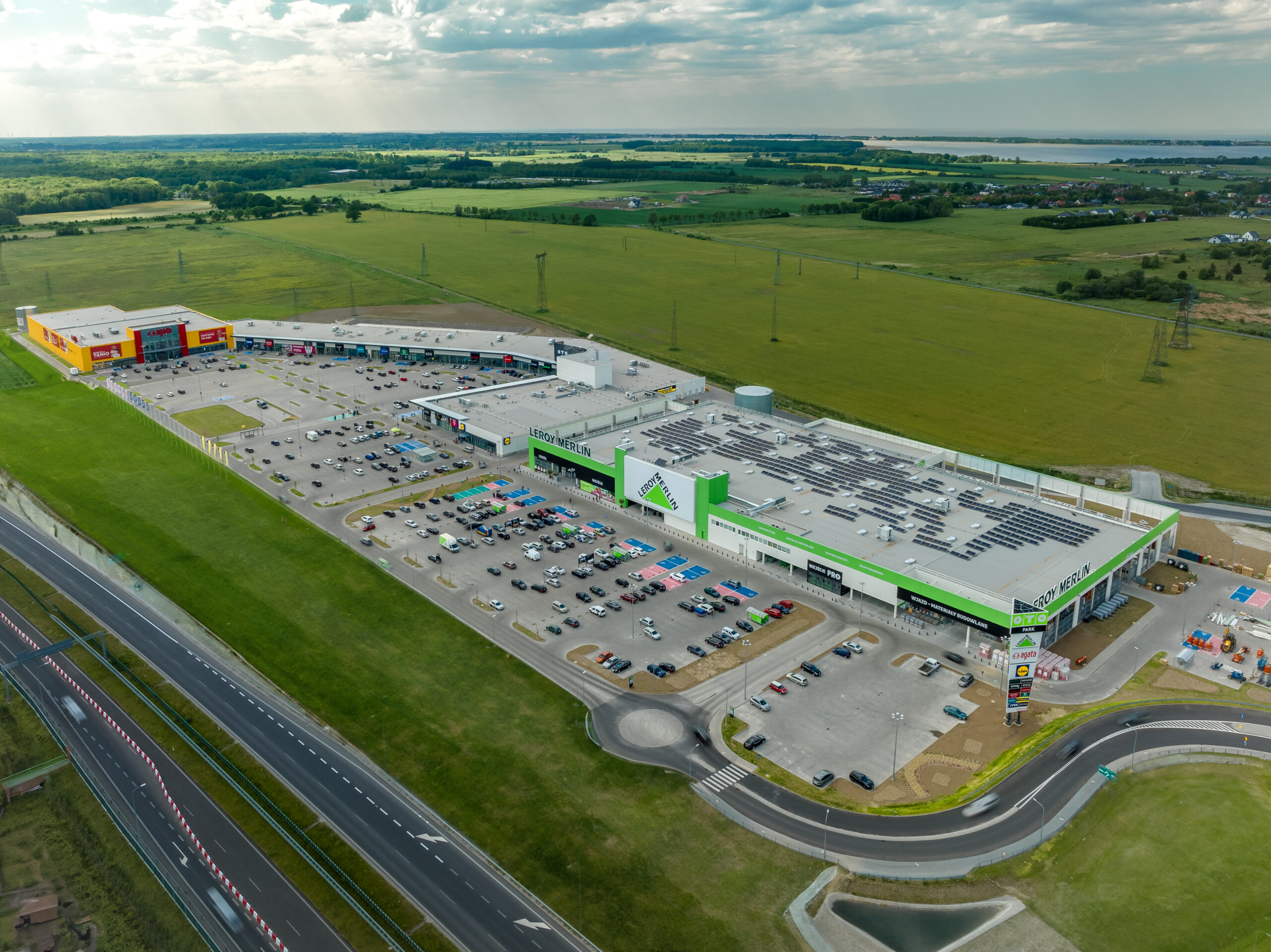 BIG Koszalin is the largest and most modern retail park in the region, located directly at the road junction of the S6 expressway, Koszalińska Street, and Europejska Avenue. It features a Lidl supermarket of approximately 2,000 sqm, the largest Leroy Merlin DIY hypermarket in the region with over 9,000 sqm, the only full-size Agata furniture showroom in the region with approximately 11,000 sqm, and 30 stores of popular brands such as Cropp, House, Martes Sport, Diverse, 4F, New Yorker, CCC, Deichmann, and Rossmann. The retail park offers parking for approximately 1,100 vehicles, EV charging stations, and a petrol station.