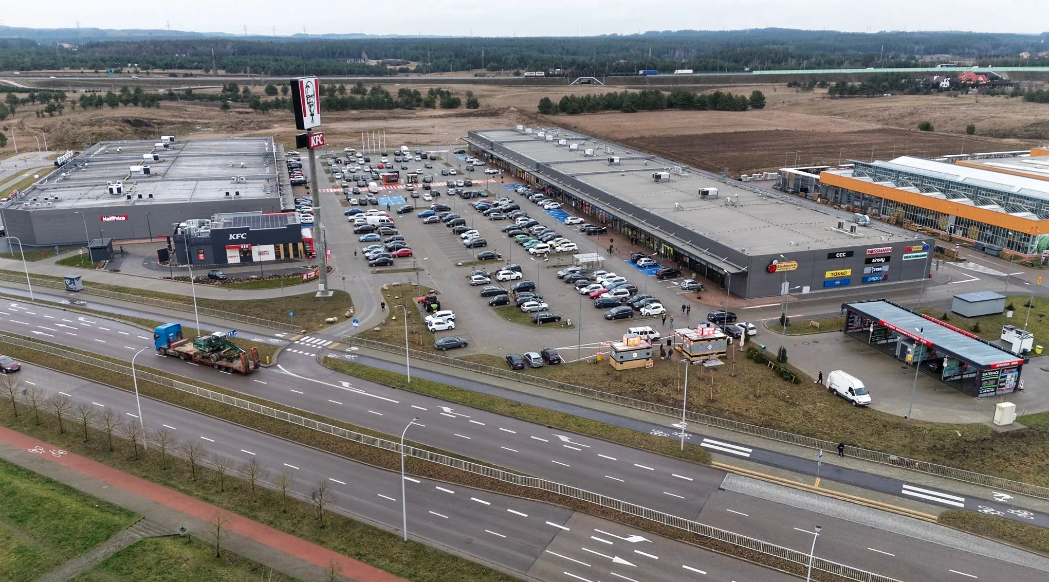 BIG Suwałki is a modern retail park that attracts a steadily growing number of satisfied customers. The facility is located in the northern part of the city, directly adjacent to one of the largest residential neighborhoods in Suwałki, the OBI DIY store, the Suwałki bypass, and the Via Baltica route – making it a unique location on the local retail map.